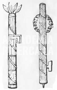 Al tempo della Repubblica Romana, i fasci si erano sviluppati in un fascio più spesso di bacchette di betulla, a volte circondando un’ascia a una testa e legate insieme con un nastro di pelle rossa in un cilindro.