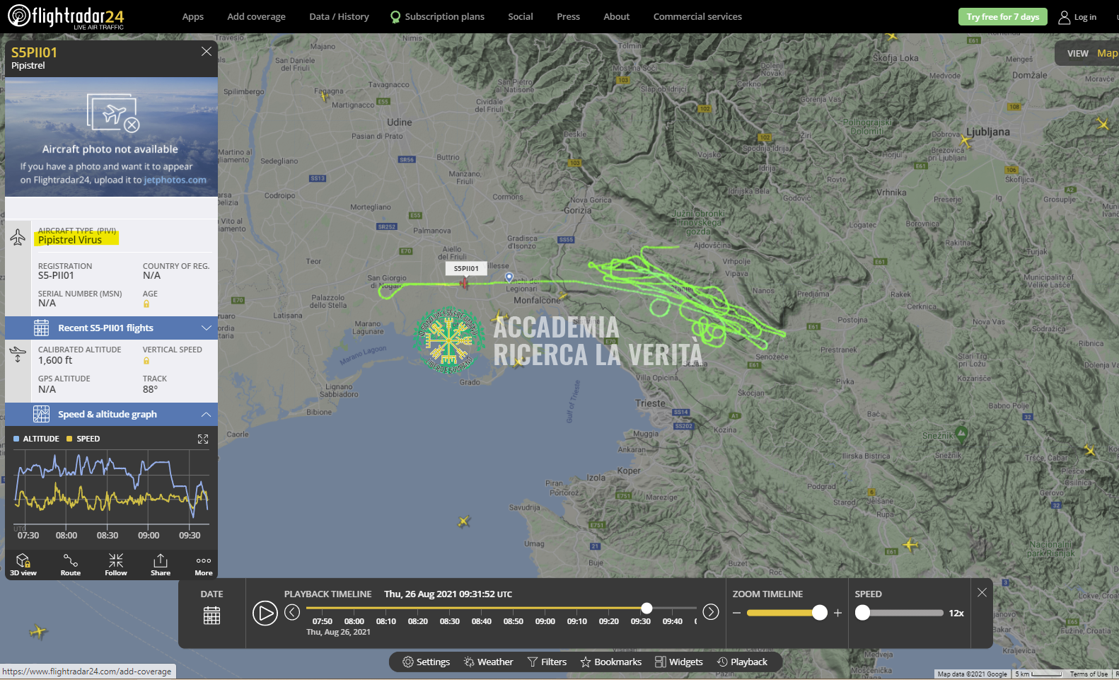 Il giorno 26 Agosto abbiamo notato una strana linea nei cieli: guardate il tipo d’aereo, l’abbiamo evidenziato sulla sinistra nell’immagine che segue: